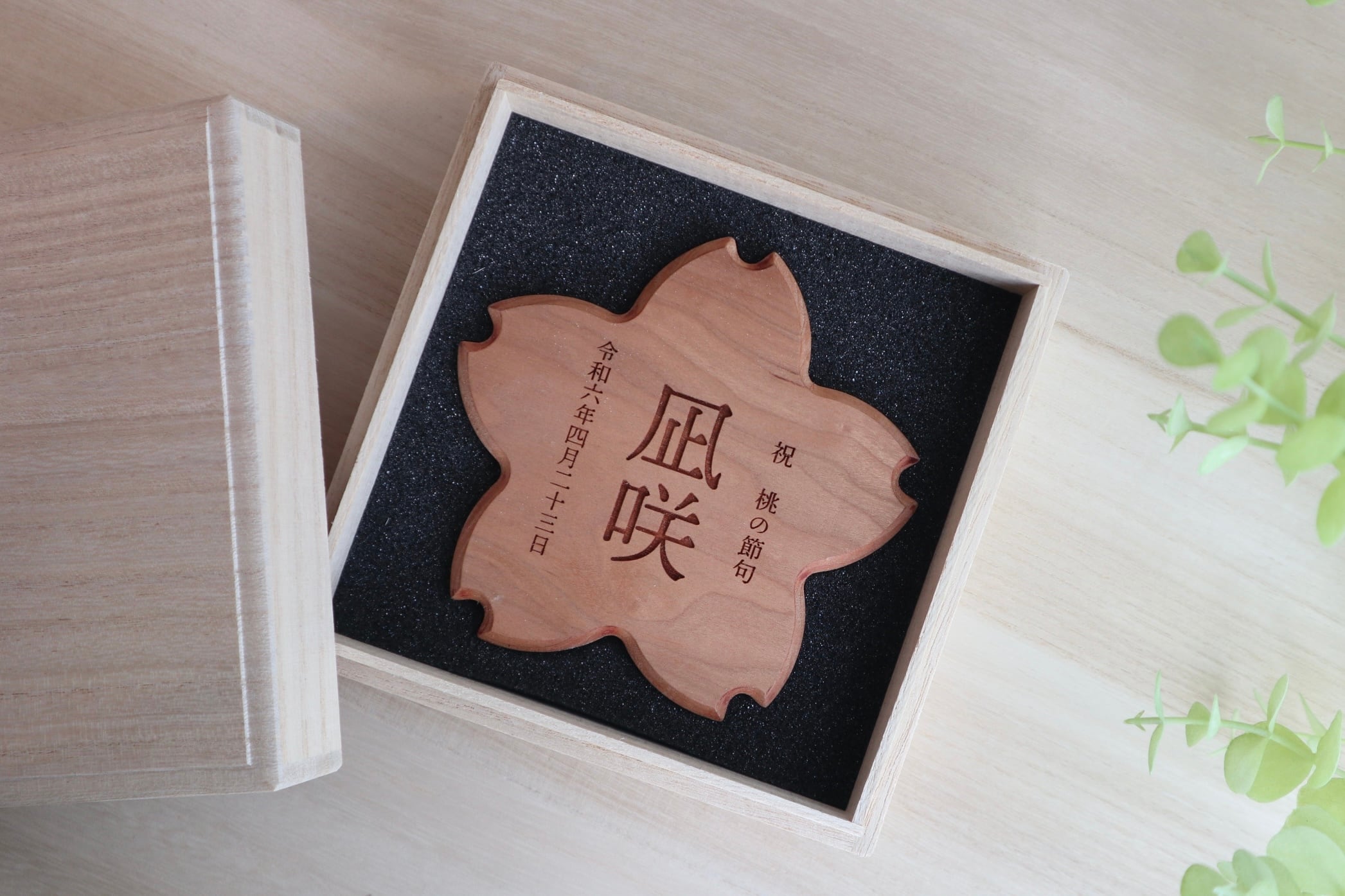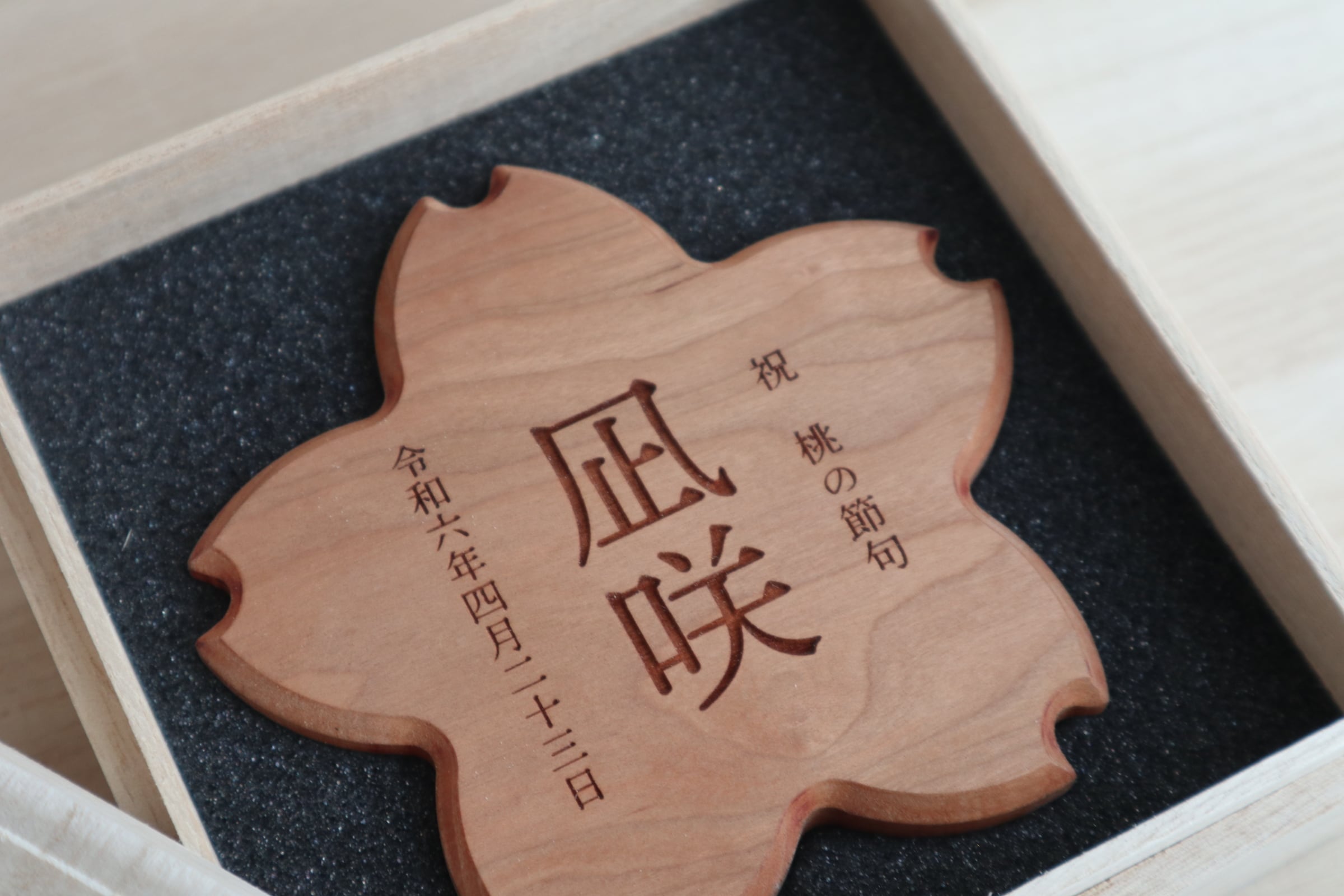 MOKOYA|HAJIMARI|桜の名入れ木札|桐箱入り|木製 ひな祭り・初節句|モコヤクラフト