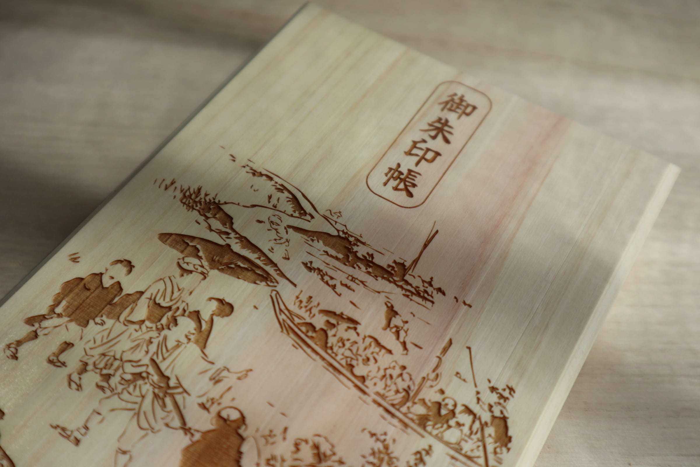 御朱印帳「参詣(さんけい)」|ヒノキの木製御朱印帳|野崎まいりデザイン|蛇腹24ページ