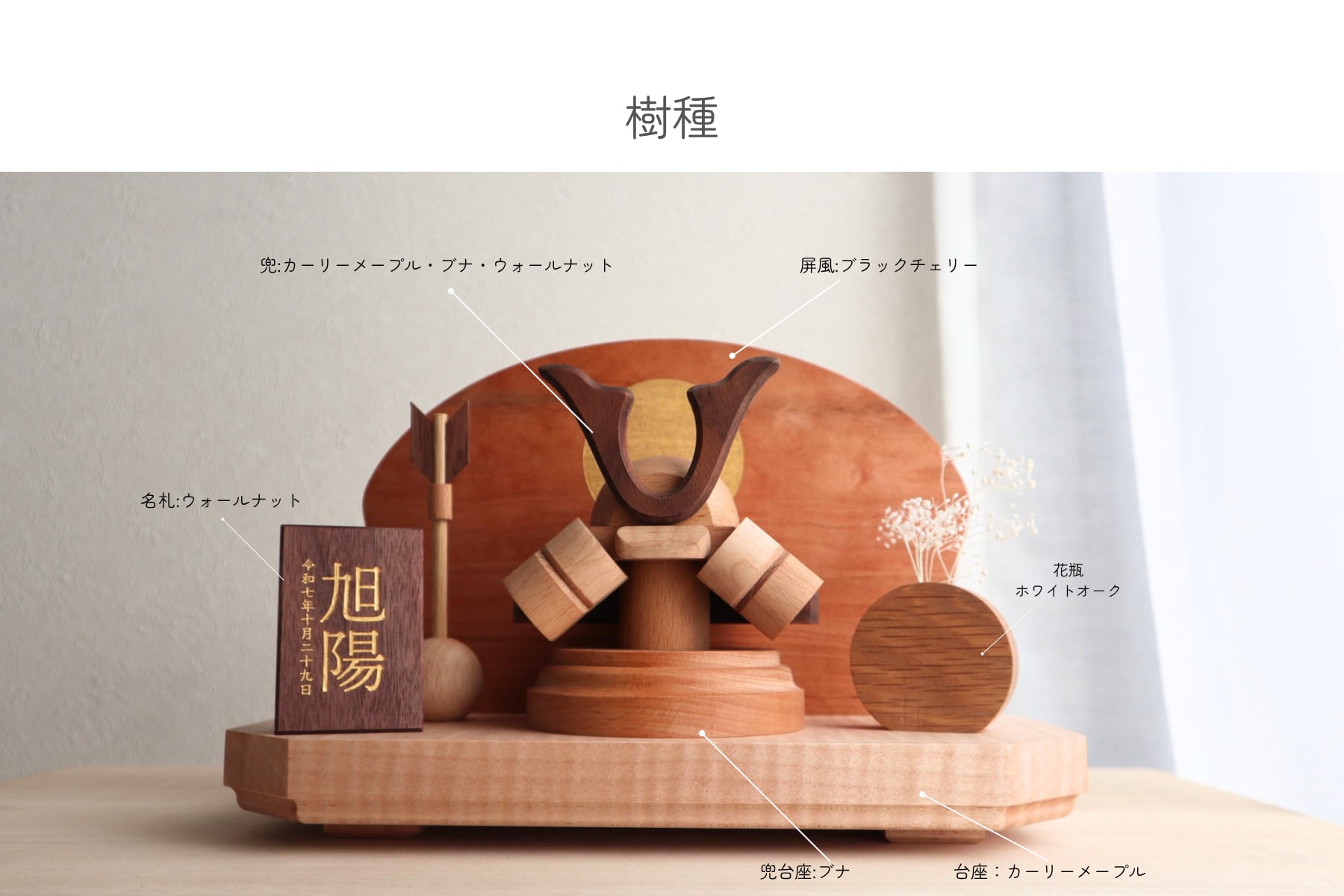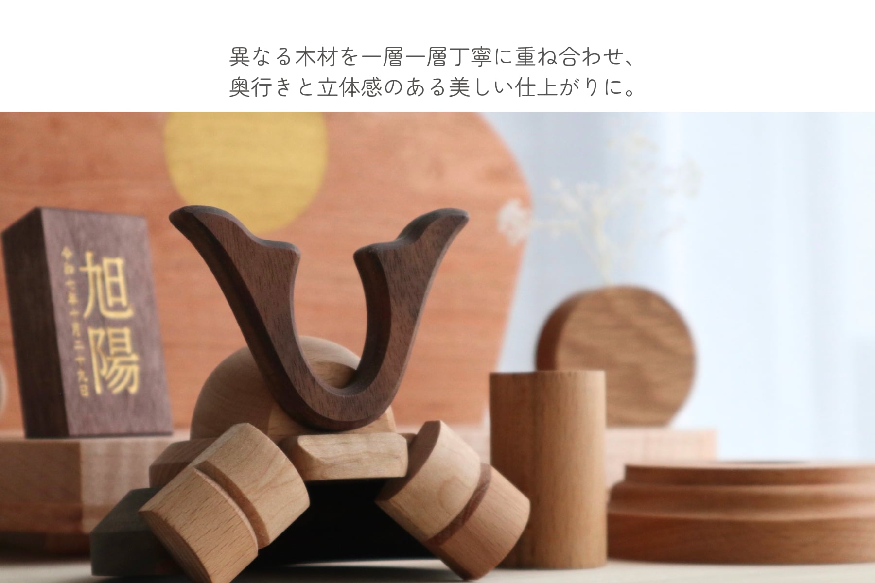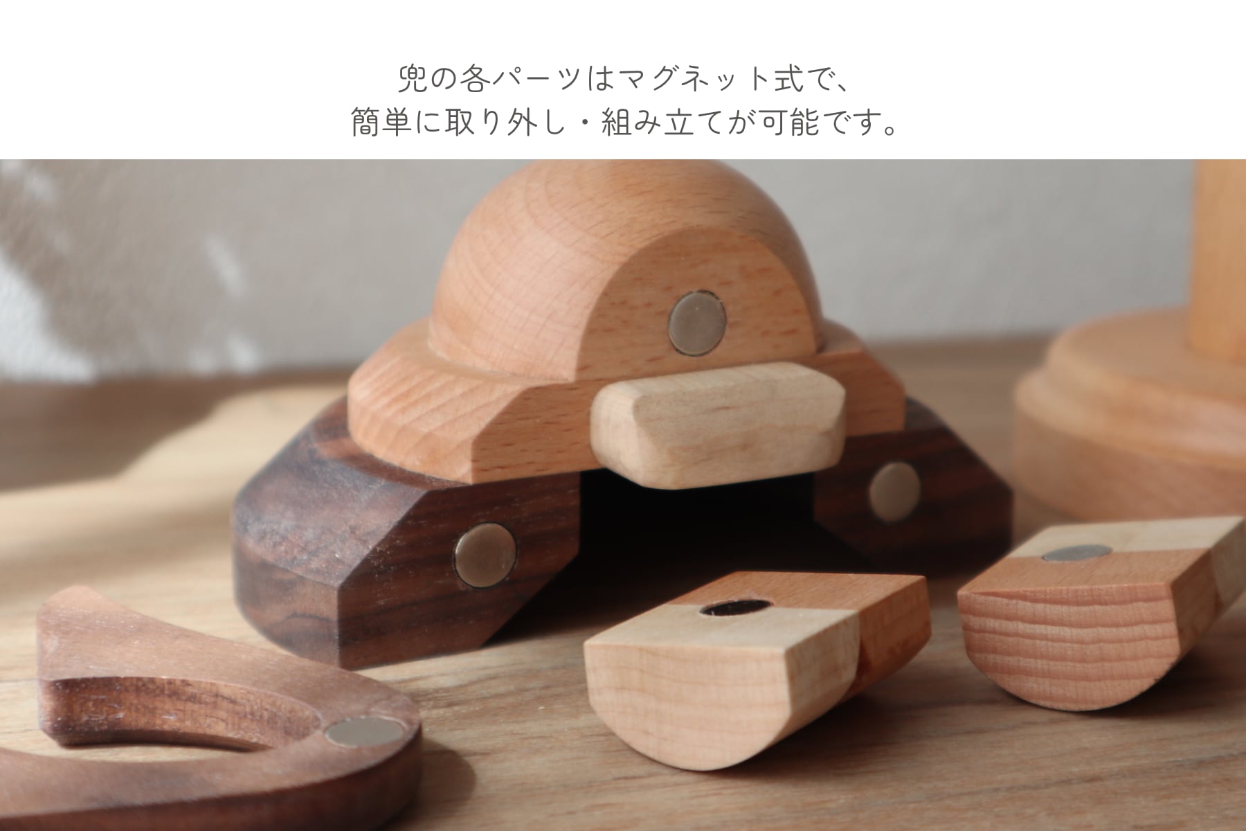 やさしい木のぬくもりを感じる五月人形「木雅兜」。